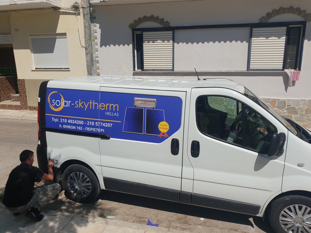Χρησιμοποιούμε υψηλής ποιότητας αυτοκόλλητα βινυλίου (τύπου car wrapping) και ειδικές ψηφιακές εκτυπώσεις με αντοχή στις καιρικές συνθήκες, την πλύση και τη φθορά του χρόνου. Οι υπηρεσίες μας περιλαμβάνουν την πλήρη σχεδίαση της μακέτας (λογότυπο, στοιχεία επικοινωνίας, υπηρεσίες) και την επαγγελματική εφαρμογή των αυτοκόλλητων στα οχήματα.