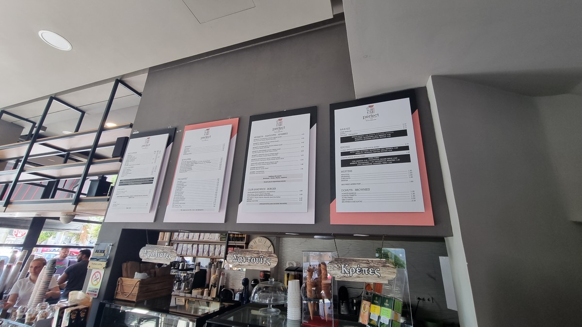 Η εργασία αφορούσε την Κατασκευή και τοποθέτηση Μενού σε Plexiglass με επικόλληση βινυλίου και έγχρωμο φόντο στην Αθήνα. Τα μενού Plexiglass είναι ανθεκτικά και εύκολα στον καθαρισμό. Η επικόλληση βινυλίου με έγχρωμο φόντο εξασφάλισε τη ζωντάνια των γραφικών. Η Επιγραφές Άρης παρέδωσε ένα λειτουργικό και αισθητικά άρτιο μενού, ιδανικό για χώρους εστίασης.